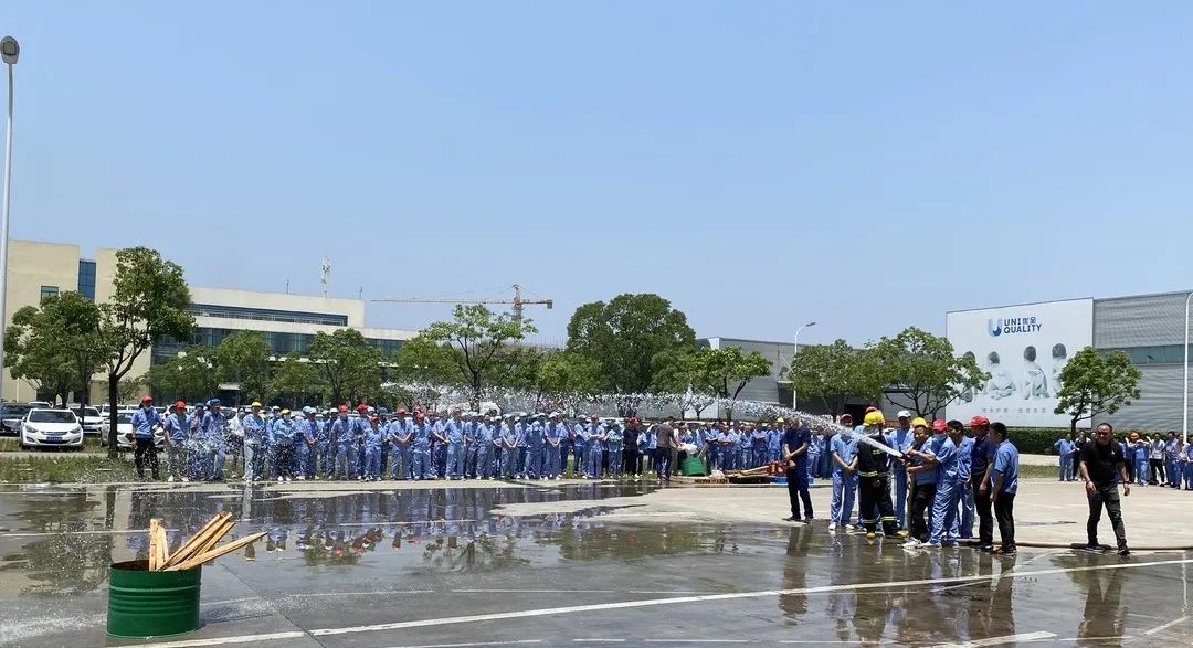 Lipanj ove godine je 20. "Mjesec sigurnosne proizvodnje" u zemlji, s temom "Provedba odgovornosti za sigurnost i promicanje sigurnog razvoja". Kako bi poboljšali sigurnost i kvalitetu gašenja požara, sigurnosnu prevenciju i sposobnost samospašavanja svih djelatnika, jutros je Uniquality Care & Kingsafe proveo sigurnosnu vježbu zaštite od požara uz pomoć vatrogasnog doma u zoni razvoja.