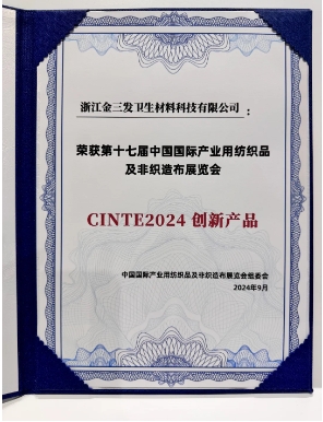"Green Super Soft Sandwich Spunlace Nonwoven" koji je predložio Zhejiang Kingsafe Sanitary Material Technology Co., Ltd. osvojio je nagradu za ekološki razvojni inovativni proizvod.