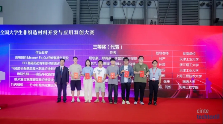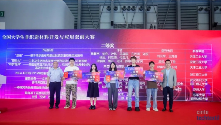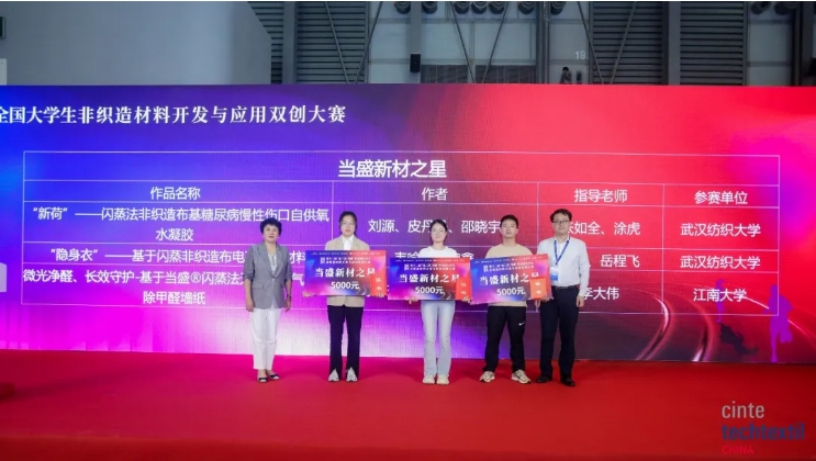 Li Lingshen, potpredsjednik Kineskog nacionalnog vijeća za tekstil i odjeću, Liang Pengcheng, potpredsjednik Kineskog nacionalnog vijeća za tekstil i odjeću i izvršni potpredsjednik ogranka tekstilne industrije Kineskog vijeća za promicanje međunarodne trgovine, Ni Yangsheng, predsjednik Kineskog tekstila and Apparel Education Society, Li Guimei, predsjednik Kineske udruge industrijske tekstilne industrije, Qian Xiaoming, direktor netkanih materijala i inženjerskog pododbora Upravnog odbora za stručnu nastavu tekstila koledža i sveučilišta Ministarstva obrazovanja, profesor Fakulteta za tekstilnu znanost i inženjerstvo Politehničkog sveučilišta Tianjin, Zhu Feichao, zamjenik direktora Odjela za konstrukciju discipline Sveučilišta Zhejiang Sci-Tech , Yu Lan, zamjenik tajnika Fakulteta za tekstilno i odjevno inženjerstvo Sveučilišta Soochow, Yan Yan, Potpredsjednik Zhejiang Kingsanda Group Co., Ltd., Zuo Hongyun, predsjednik Jiangsu Baijiali New Material Technology Co., Ltd., Chen Hua, generalni direktor Henan Yixiang Health Technology Co., Ltd., Shan Lei, direktor marketinga Xiamen Dangsheng New Materials Co., Ltd. i drugi vodeći gosti, kao i nagrađeni učenici ovog natjecanja, nastavnici i predstavnici studenata sveučilišta koja sudjeluju nazočila su dodjeli nagrada. Sastankom je predsjedao profesor Feng Yan s Politehničkog sveučilišta Tianjin.